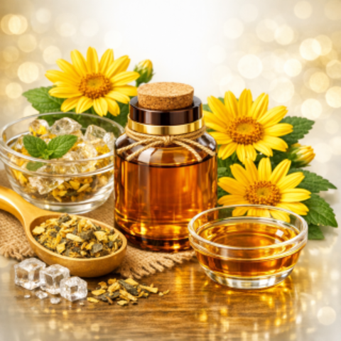 消炎・利胆作用を持ち、漢方では黄疸や蕁麻疹の治療にも用いられるカワラヨモギ頭花(キク科・多年草)から抽出したエキス。真皮ヒアルロン酸分解を司るHYBIDの発現を抑制し、真皮ヒアルロン酸の低分子化を防ぎ、たるみやシワなどの老化症状の予防・改善への効果が期待されるアンチエイジング天然素材です。